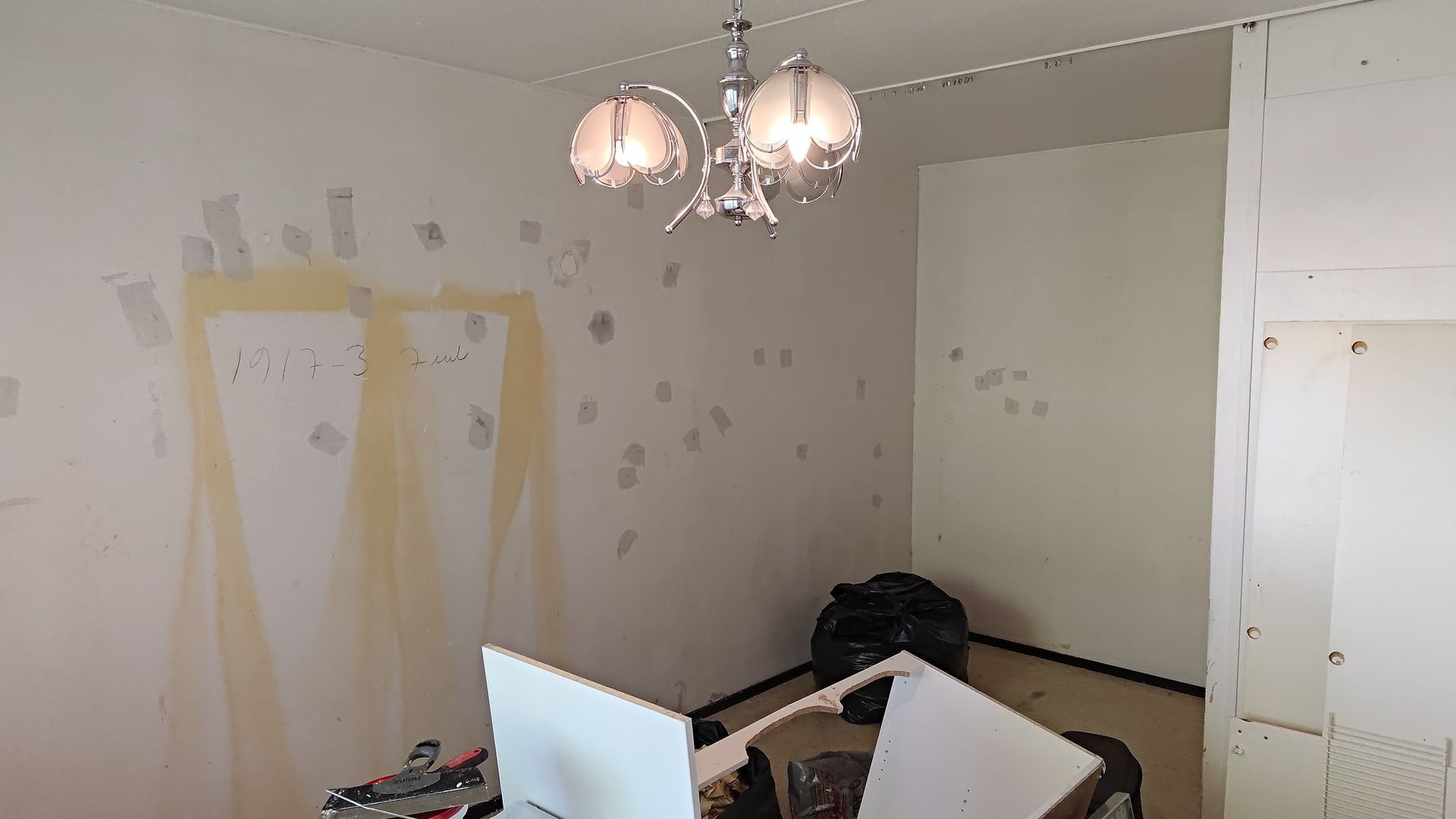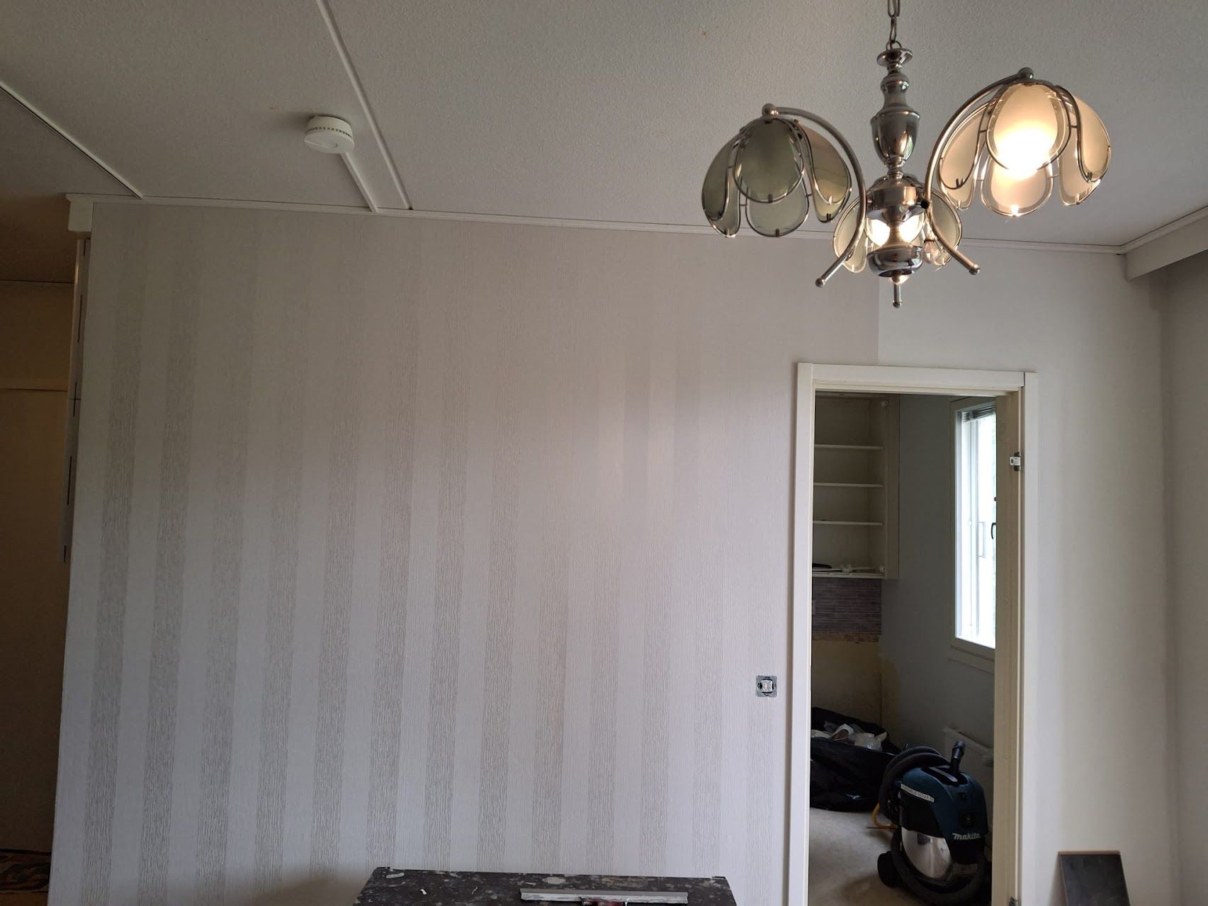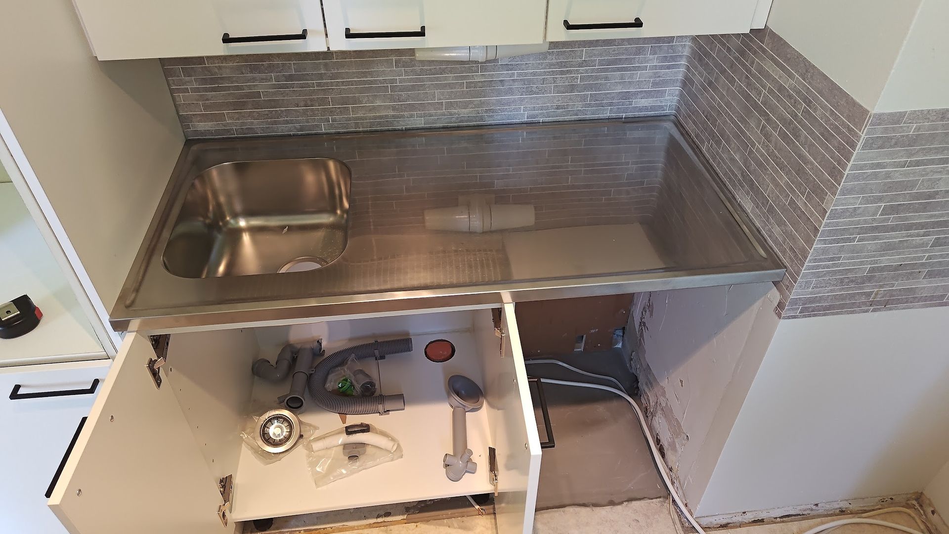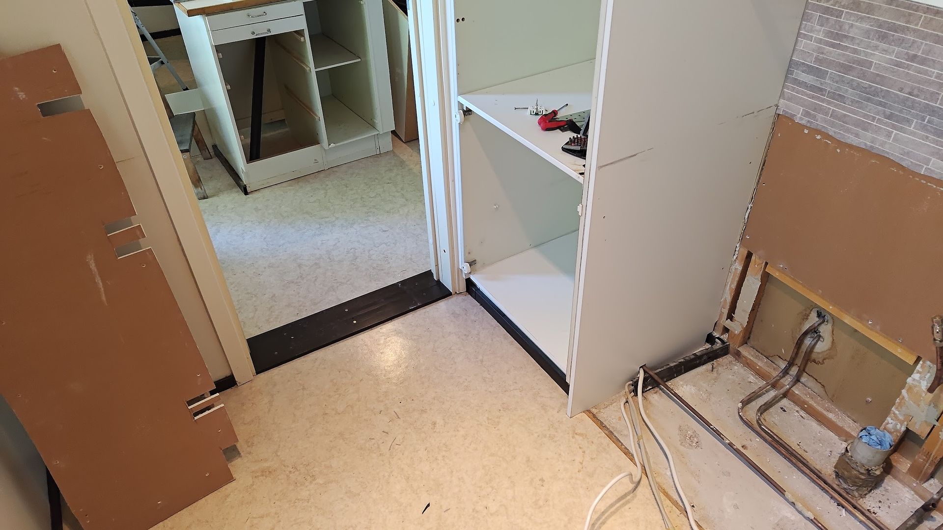 Uusittiin asunnon pintoja, keittiöön kalusteita, kodinkoneita ja astianpesukonepaikka