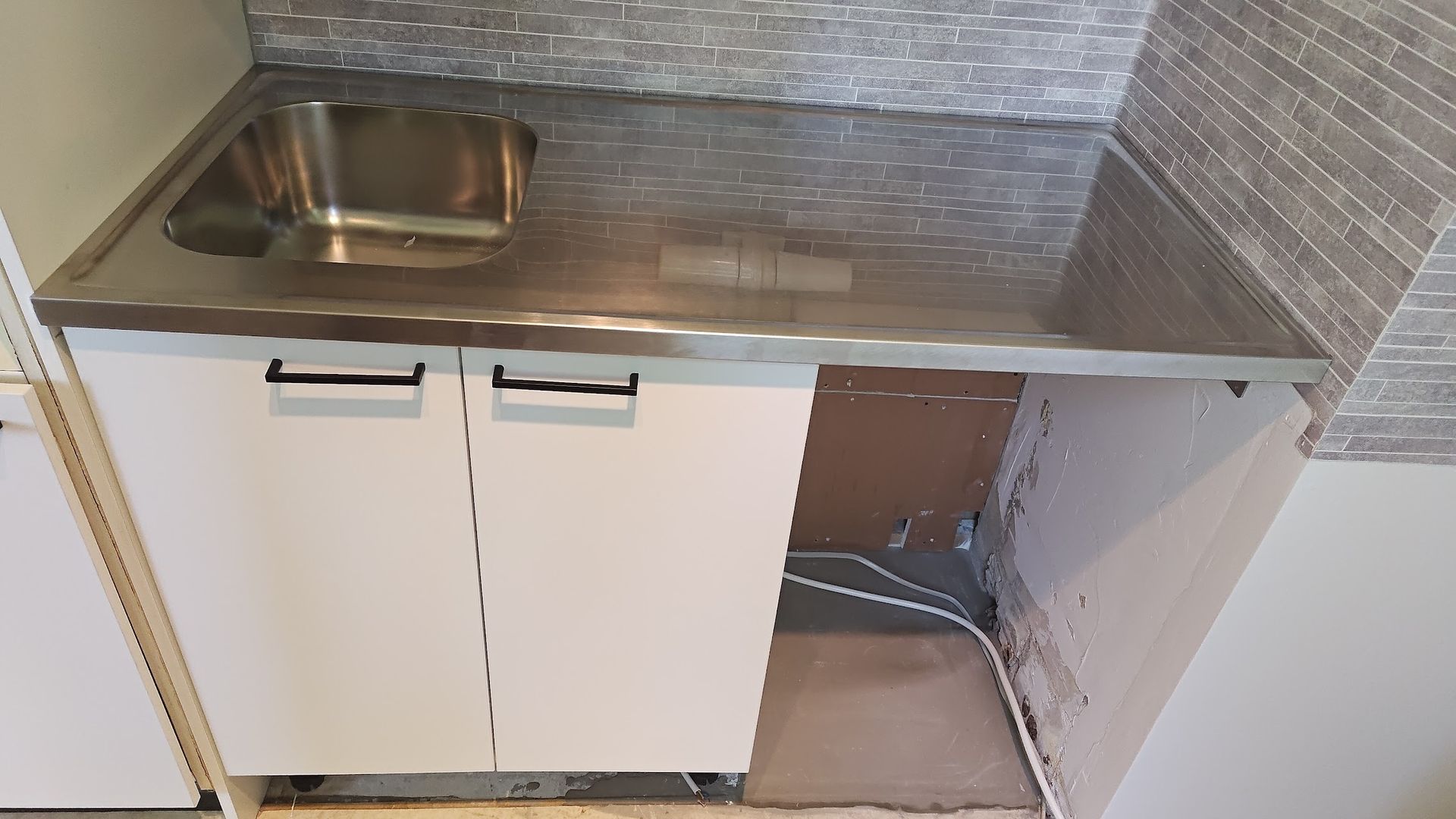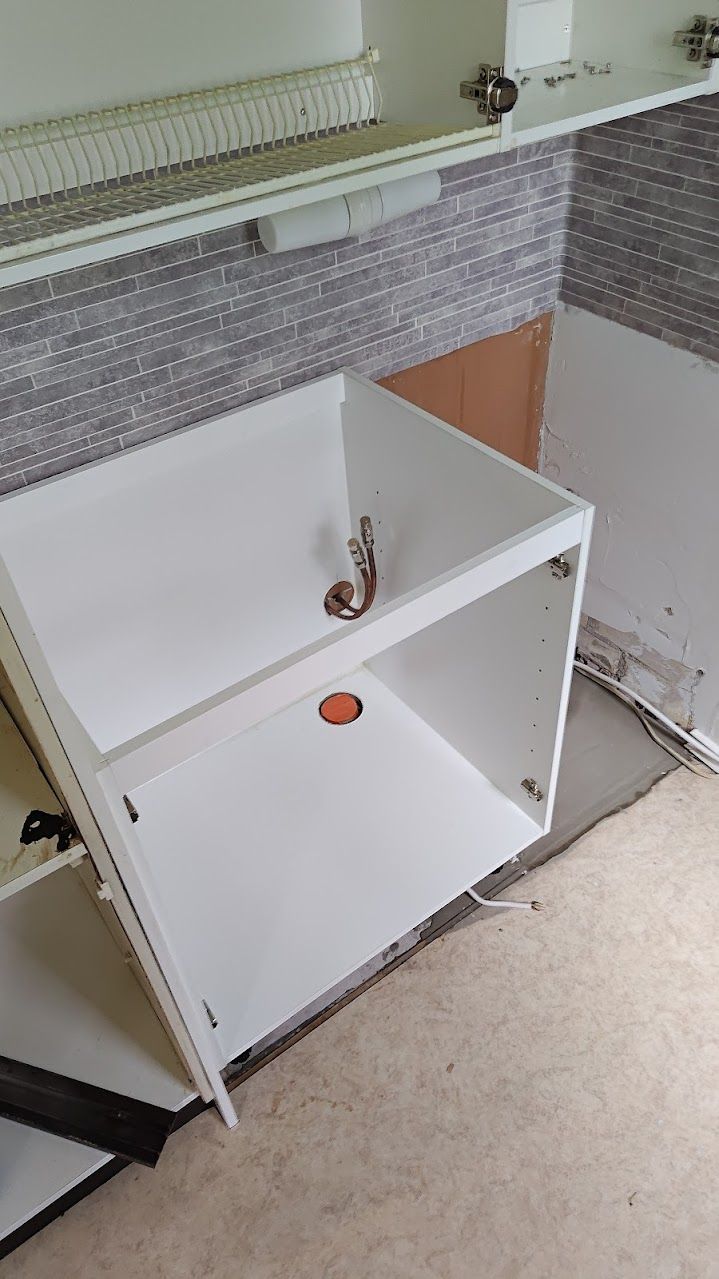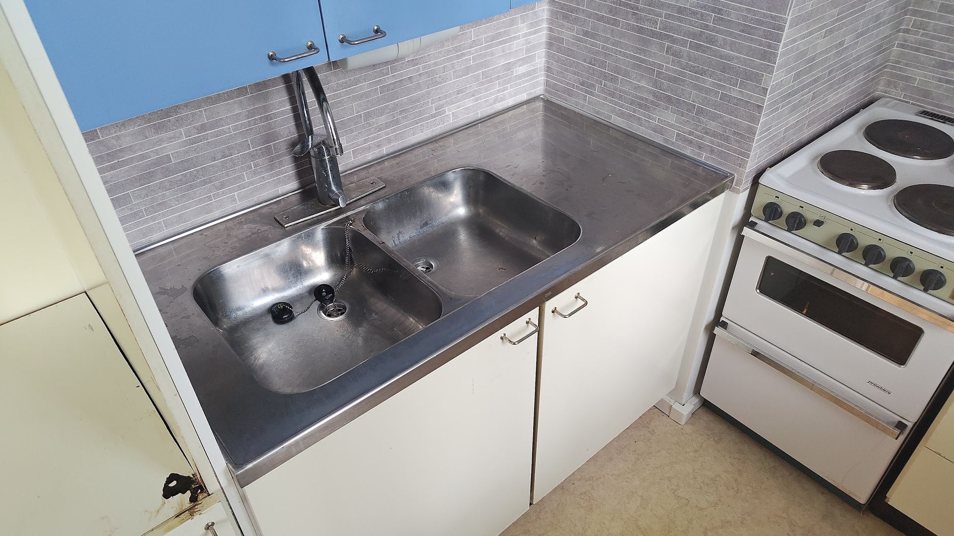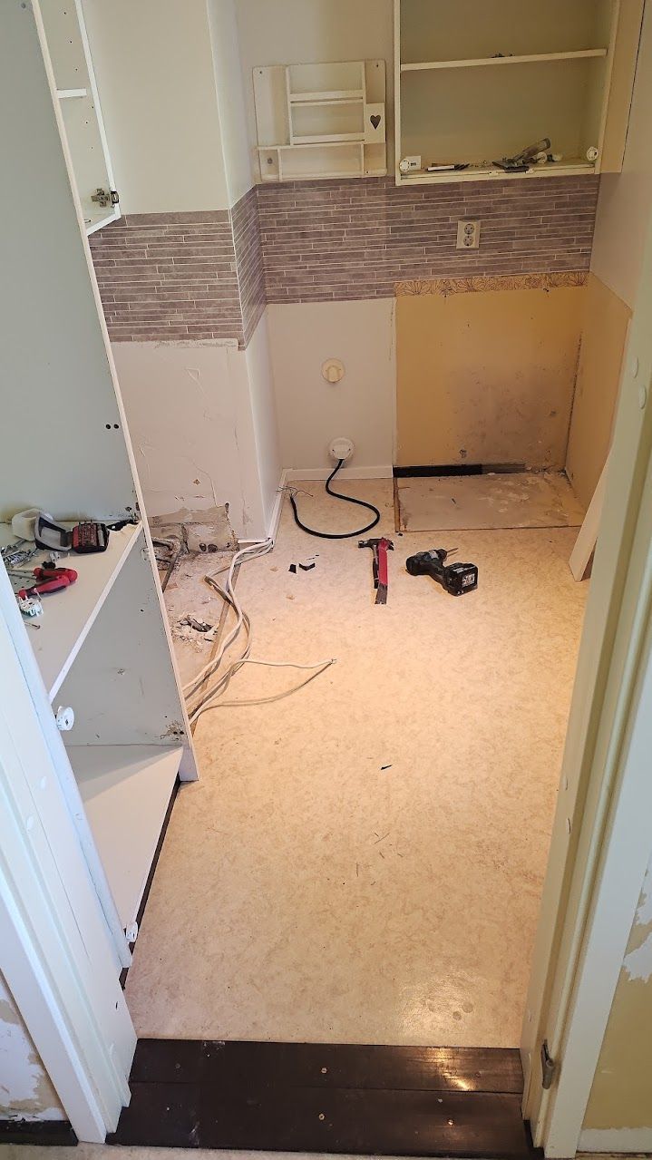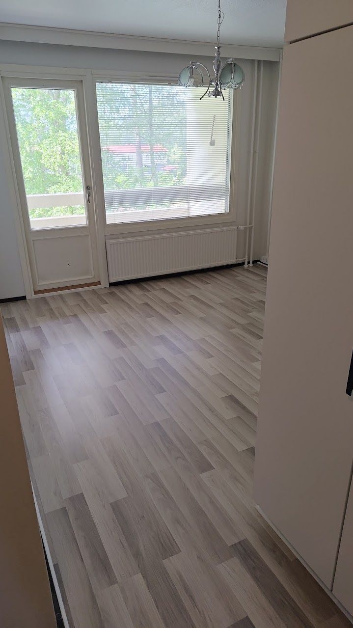 Uusittiin asunnon pintoja, keittiöön kalusteita, kodinkoneita ja astianpesukonepaikka